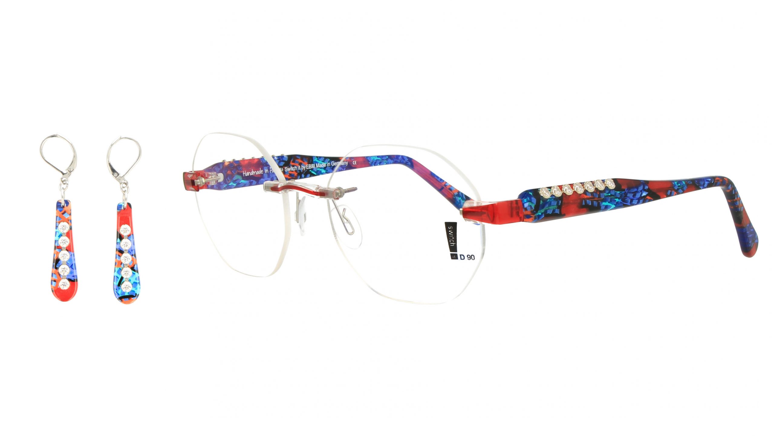 „switch it“ Garnitur Limited Edition OHRRING08 rot-grün-blau-hellblau-gem.,Juwel-Kette Zirk.Sterl Modell:2-100240